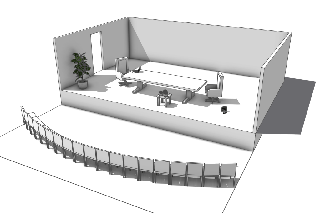 Set and props are best kept to a minimum to encourage the theatricality of the actors in performance. See the sketch for the essential set features and props.